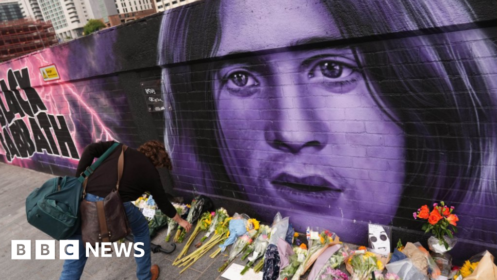 Osbourne's widow Sharon and children Aimee, Jack and Kelly visited floral tributes laid at Black Sabbath bridge following his death on 22 July in a cortege that weaved through the streets of his home city.