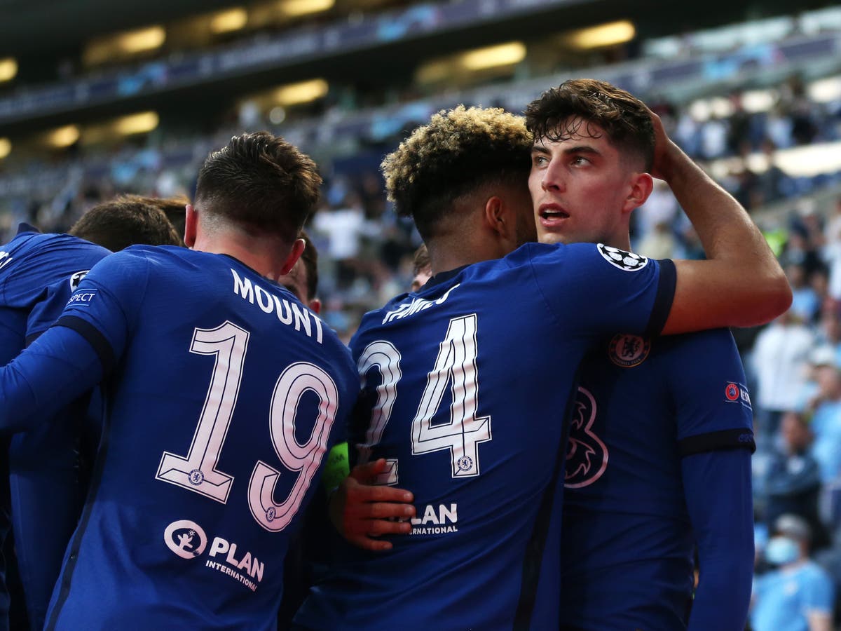 45+3 mins: Half time. A very entertaining first half draws to a close with Chelsea in front in Porto. Man City’s defence became too stretched and Mason Mount took advantage of the open space to play Kai Havertz in on goal. He took his opportunity and joins Frank Lampard and Didier Drogba as Chelsea goalscorers in a Champions League final.