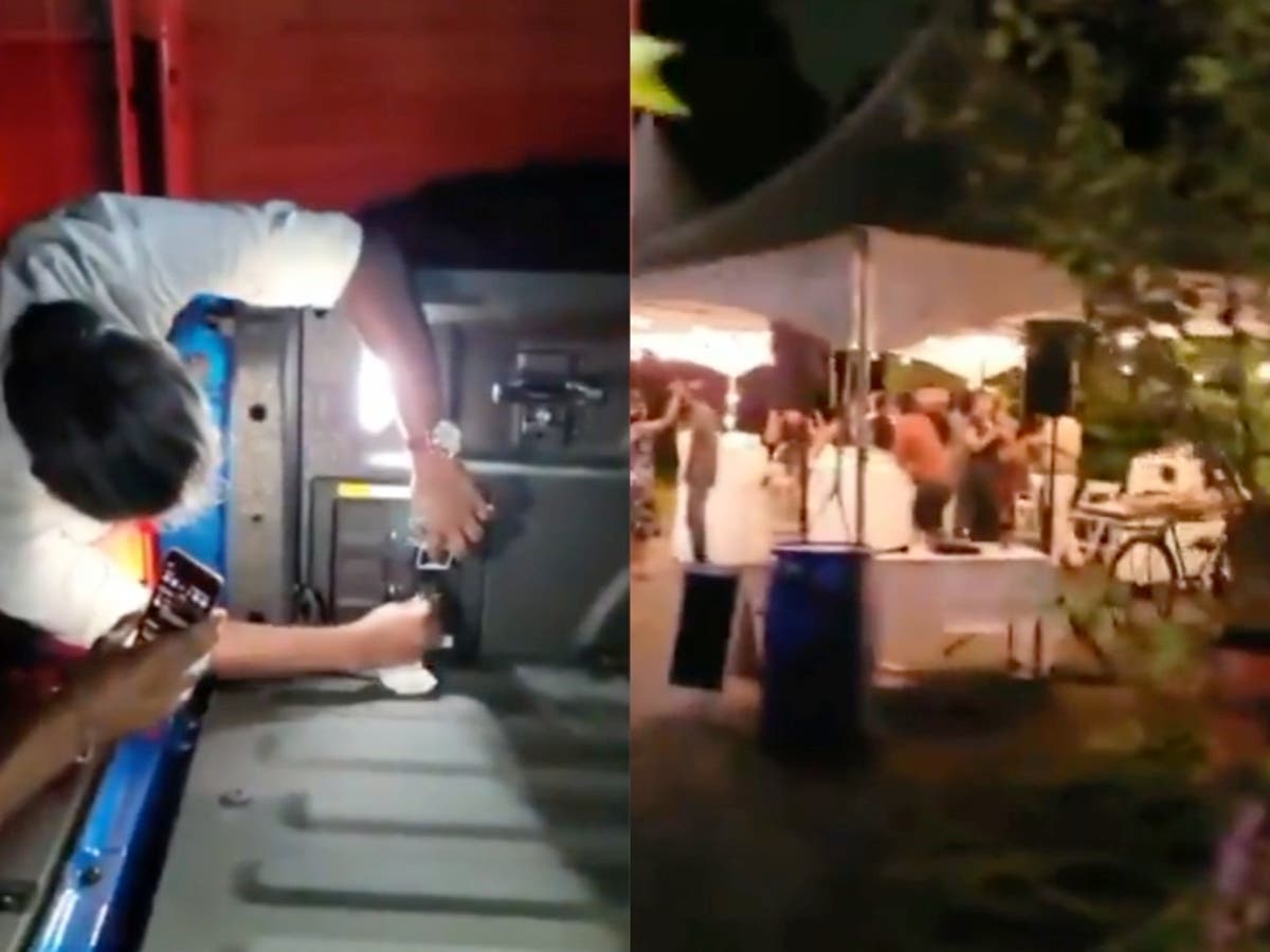 In a clip shared by Ford Motors CEO Jim Farley to Twitter, the wedding guests can be seen milling about in the dark as the engineers plug various cords into the truck’s generator.