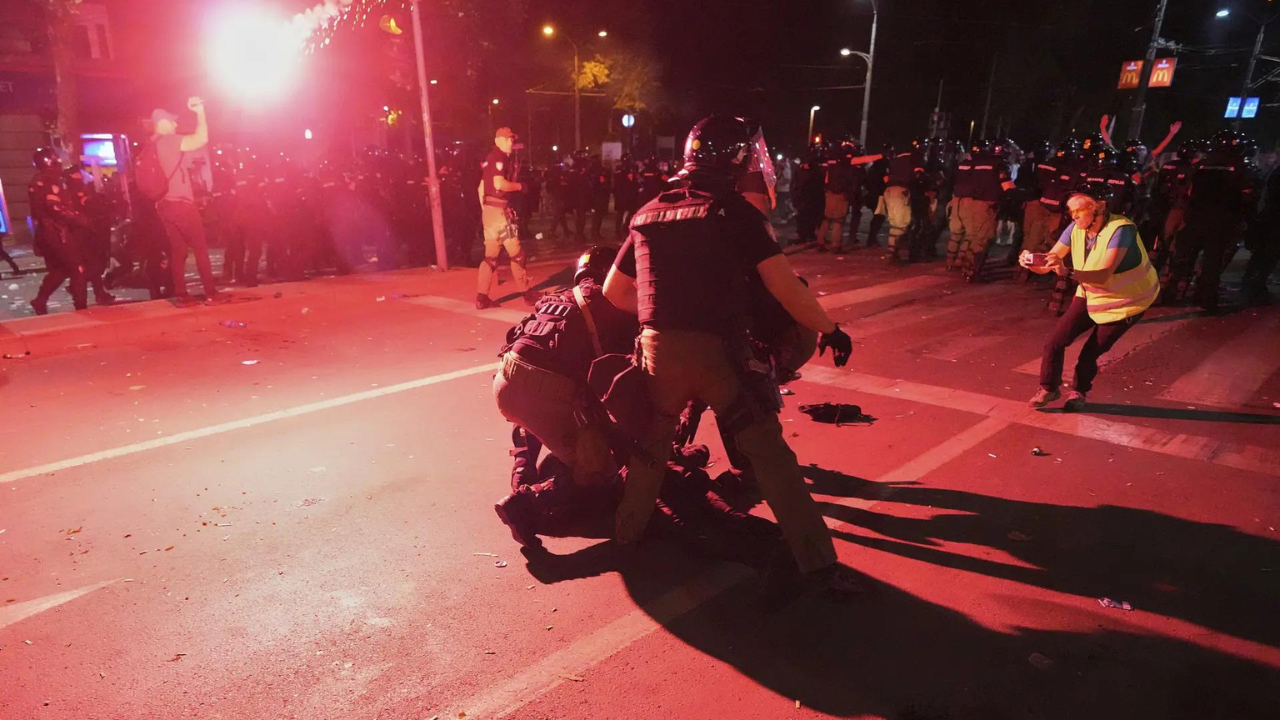 Dozens of anti‑government demonstrators were arrested in Serbia’s capital on Saturday night after hours‑long clashes with riot police that followed one of the largest protests against President Aleksandar Vucic in recent years.“We want elections!”- slogans were raised by protestors who overflowed Slavija Square and nearby streets during the student‑led rally, capping nearly eight months of near‑daily dissent that has shaken Vucic’s decade‑long hold on power.